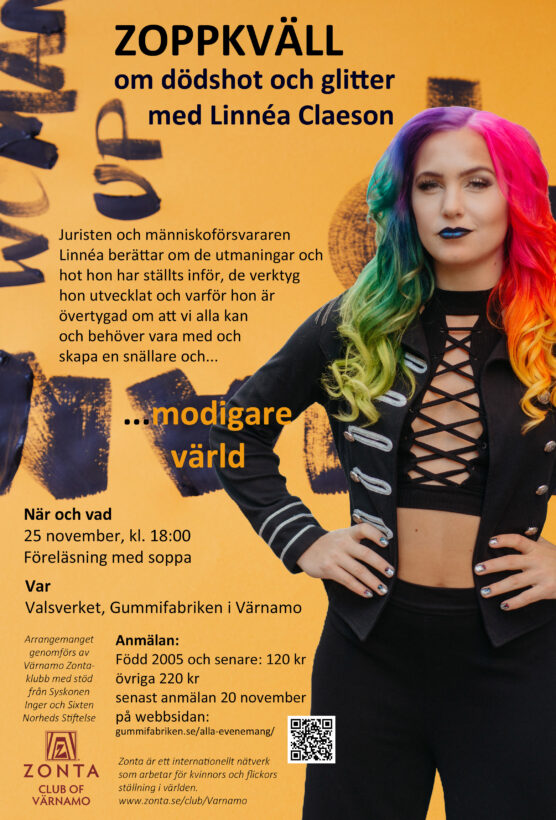 Värnamo Zontaklubb welcomes you to an evening of soup and lecture with support from the Inger and Sixten Norhed Foundation.